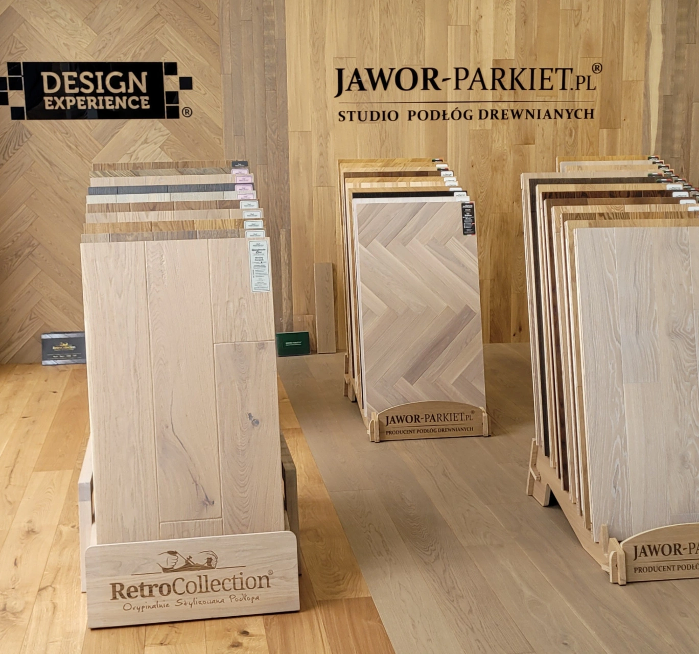 Są to tradycyjne parkiety i deski drewniane, bardzo efektowna jodełka francuska Chevron, kolekcja Vintage, podłogi ręcznie stylizowane z serii Retro Collection, linia podłóg stawiająca na wyjątkowy design i innowacyjność czyli Design Experience lub harmonia tradycji i nowoczesności z Fertig Deska.